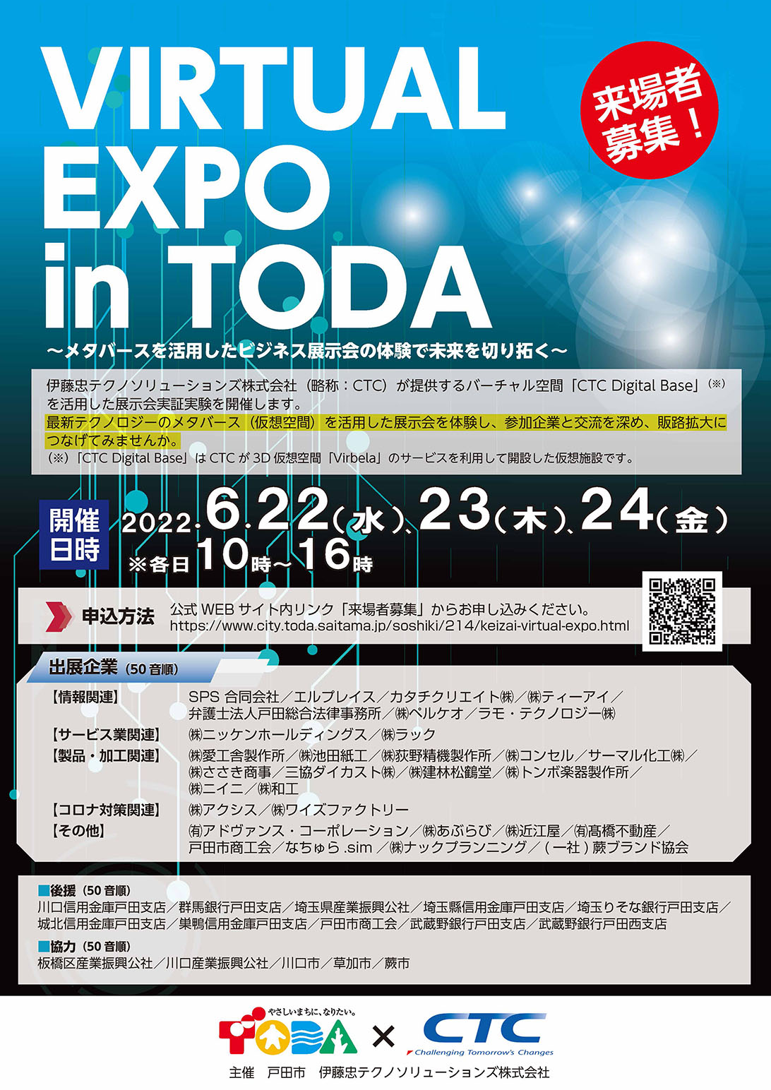 メタバースを活用した展示会「VIRTUAL EXPO in TODA」に出展いたします。